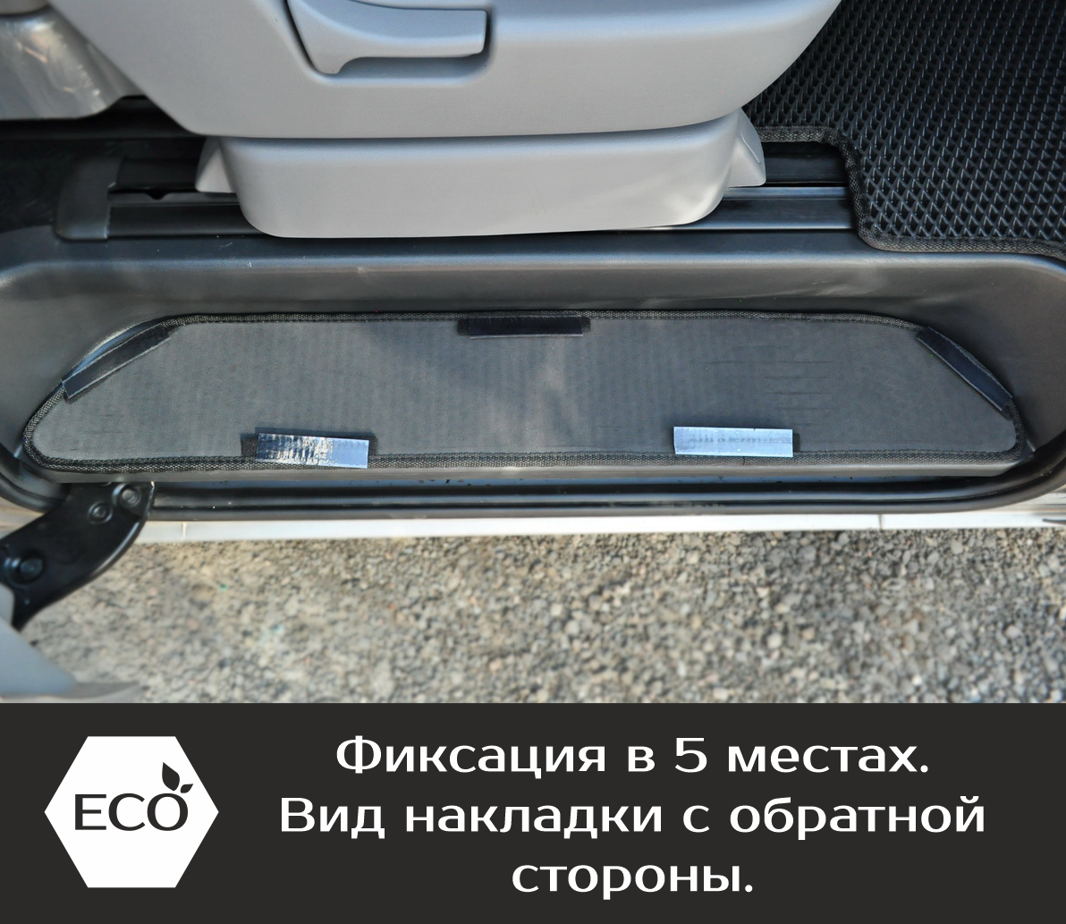 Накладки на пороги гармонично сочетаются с салонными ковриками EVA, дополняя друг друга.