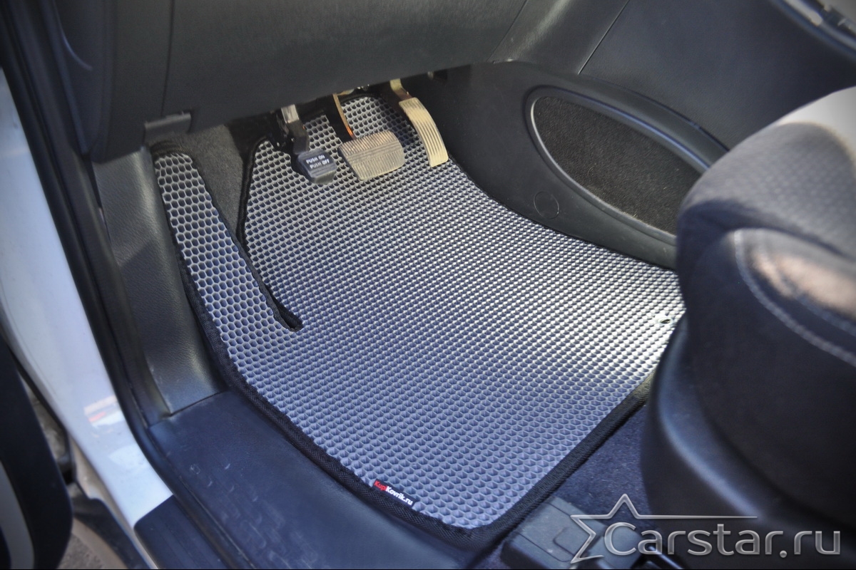 Толщина ковриков EVA составляет 10-12 мм. Глубина ячеек 7-8 мм. Такая толщина ковриков позволяет им служить довольно долго, не протираясь до 3 лет. А благодаря такой глубине ячеек коврик EVA площадью 1 кв.м. способен захватить около 3,5 л жидкости, сохраняя в чистоте вашу обувь и обивку салона.