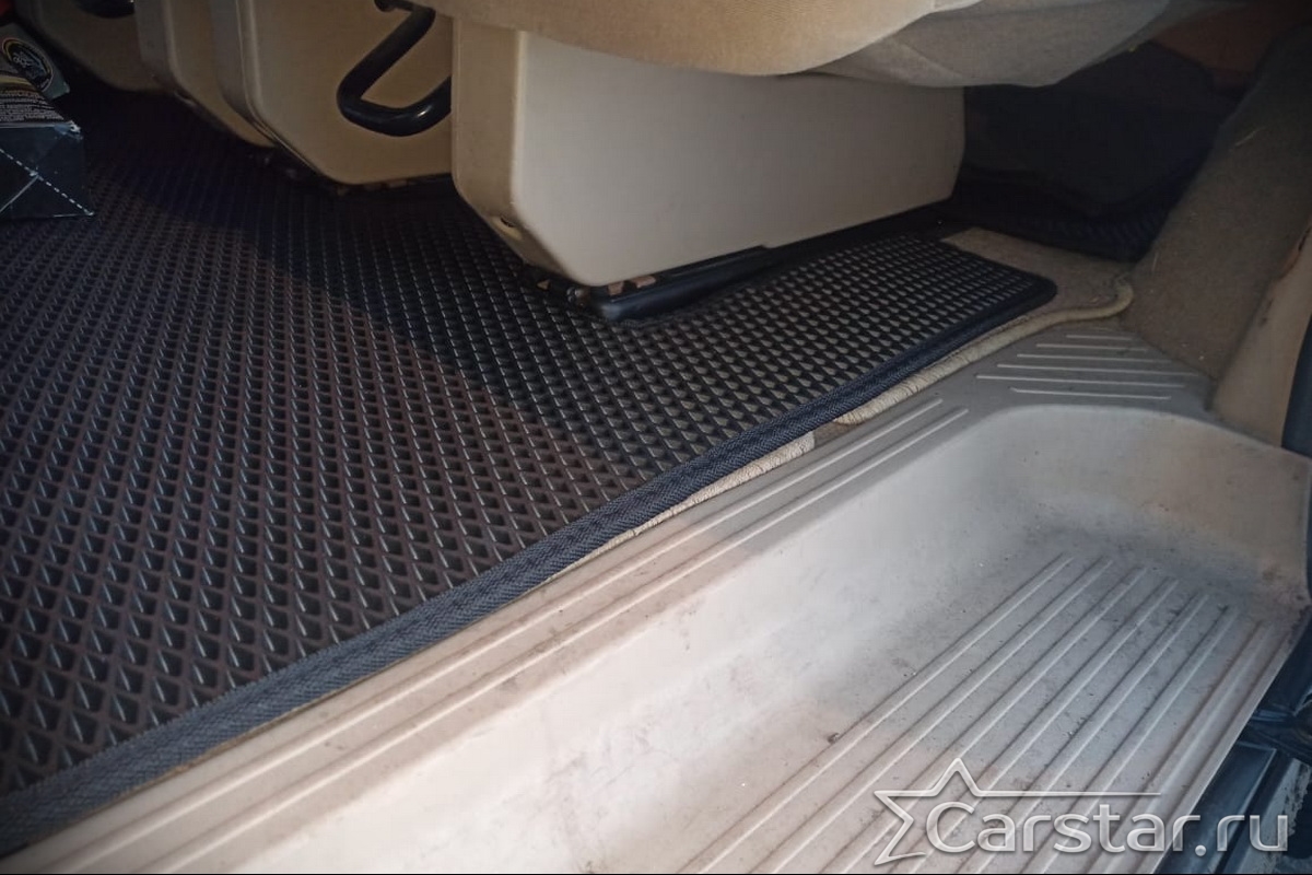 Толщина ковриков EVA составляет 10-12 мм. Глубина ячеек 7-8 мм. Такая толщина ковриков позволяет им служить довольно долго, не протираясь до 3 лет. А благодаря такой глубине ячеек коврик EVA площадью 1 кв.м. способен захватить около 3,5 л жидкости, сохраняя в чистоте вашу обувь и обивку салона.