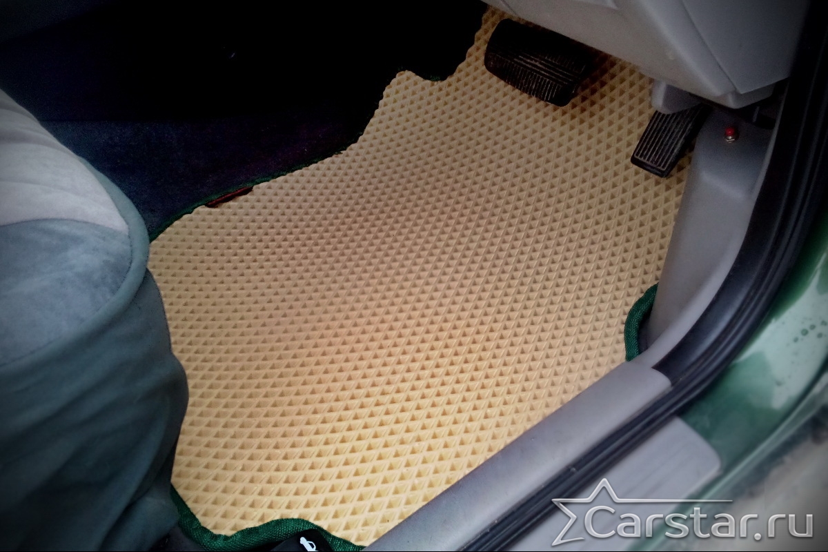 Толщина ковриков EVA составляет 10-12 мм. Глубина ячеек 7-8 мм. Такая толщина ковриков позволяет им служить довольно долго, не протираясь до 3 лет. А благодаря такой глубине ячеек коврик EVA площадью 1 кв.м. способен захватить около 3,5 л жидкости, сохраняя в чистоте вашу обувь и обивку салона.