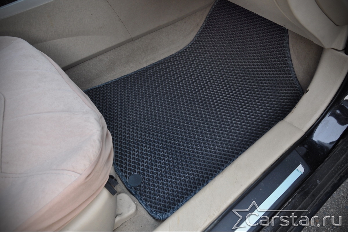 Толщина ковриков EVA составляет 10-12 мм. Глубина ячеек 7-8 мм. Такая толщина ковриков позволяет им служить довольно долго, не протираясь до 3 лет. А благодаря такой глубине ячеек коврик EVA площадью 1 кв.м. способен захватить около 3,5 л жидкости, сохраняя в чистоте вашу обувь и обивку салона.