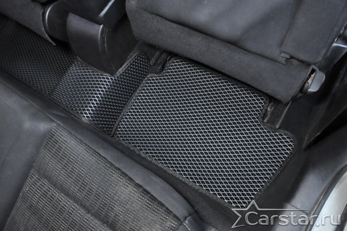 Толщина ковриков EVA составляет 10-12 мм. Глубина ячеек 7-8 мм. Такая толщина ковриков позволяет им служить довольно долго, не протираясь до 3 лет. А благодаря такой глубине ячеек коврик EVA площадью 1 кв.м. способен захватить около 3,5 л жидкости, сохраняя в чистоте вашу обувь и обивку салона.