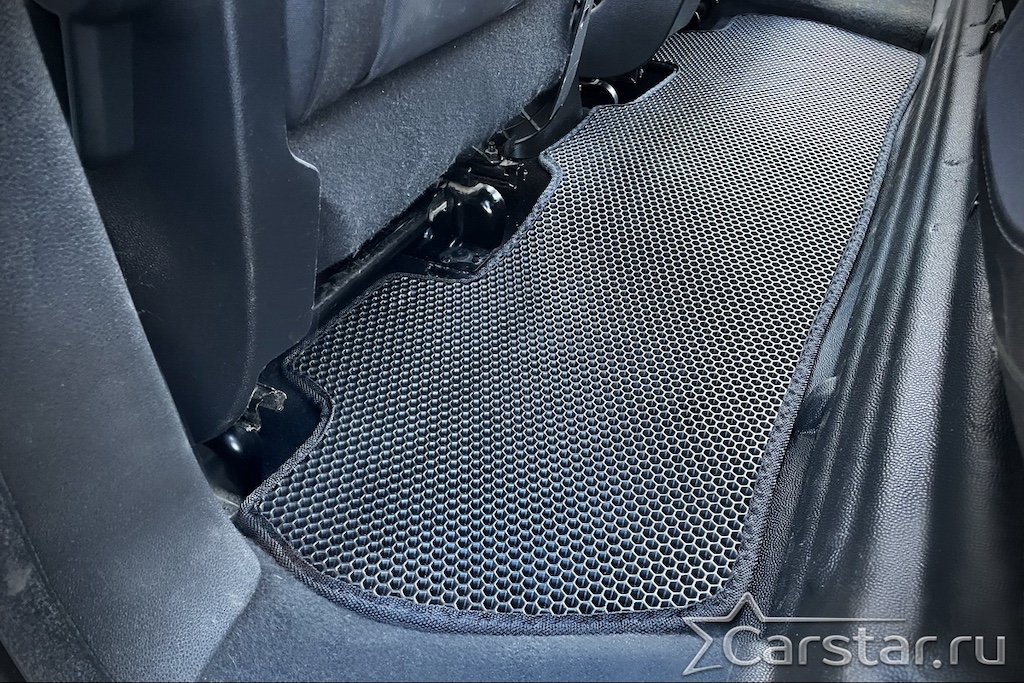 Толщина ковриков EVA составляет 10-12 мм. Глубина ячеек 7-8 мм. Такая толщина ковриков позволяет им служить довольно долго, не протираясь до 3 лет. А благодаря такой глубине ячеек коврик EVA площадью 1 кв.м. способен захватить около 3,5 л жидкости, сохраняя в чистоте вашу обувь и обивку салона.