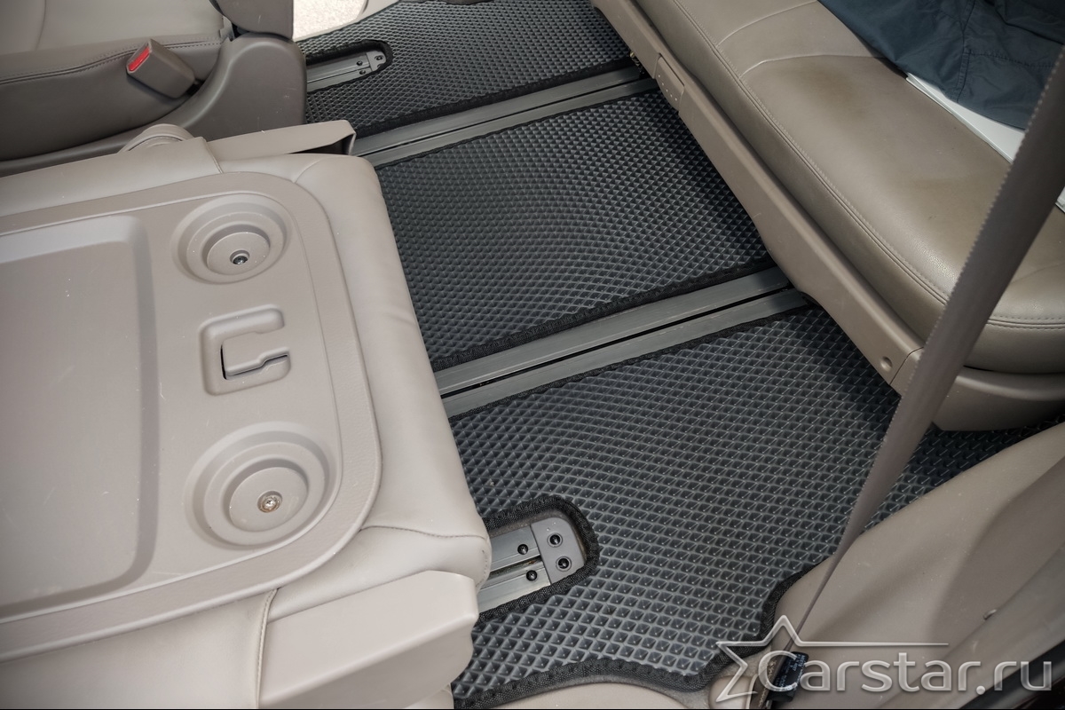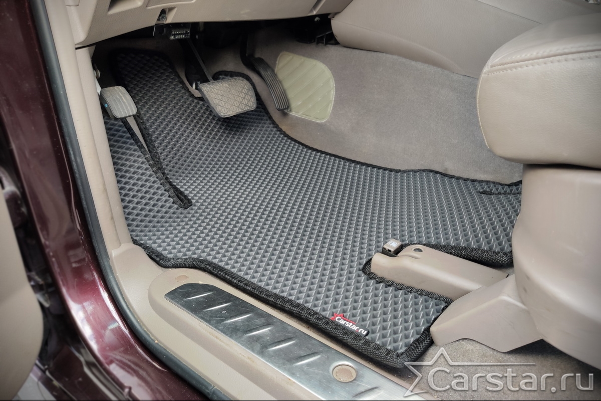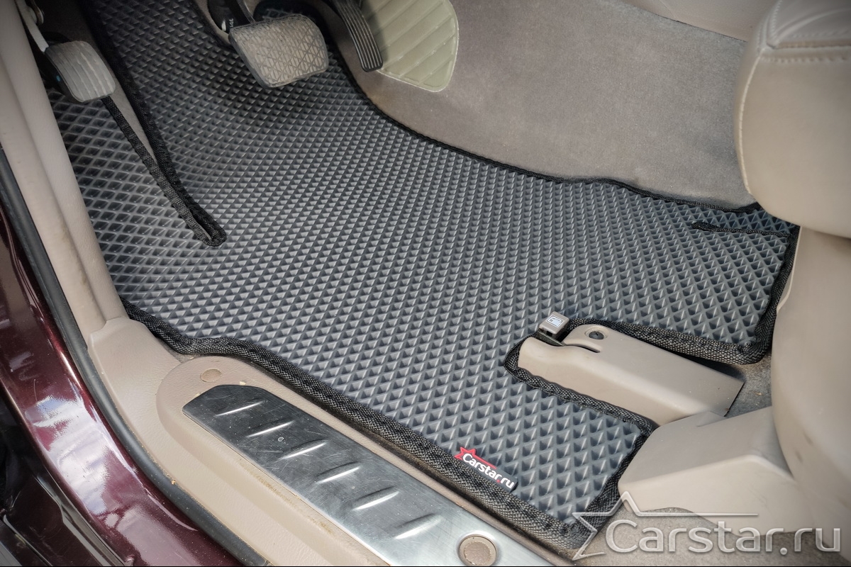 Толщина ковриков EVA составляет 10-12 мм. Глубина ячеек 7-8 мм. Такая толщина ковриков позволяет им служить довольно долго, не протираясь до 3 лет. А благодаря такой глубине ячеек коврик EVA площадью 1 кв.м. способен захватить около 3,5 л жидкости, сохраняя в чистоте вашу обувь и обивку салона.