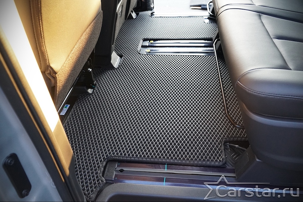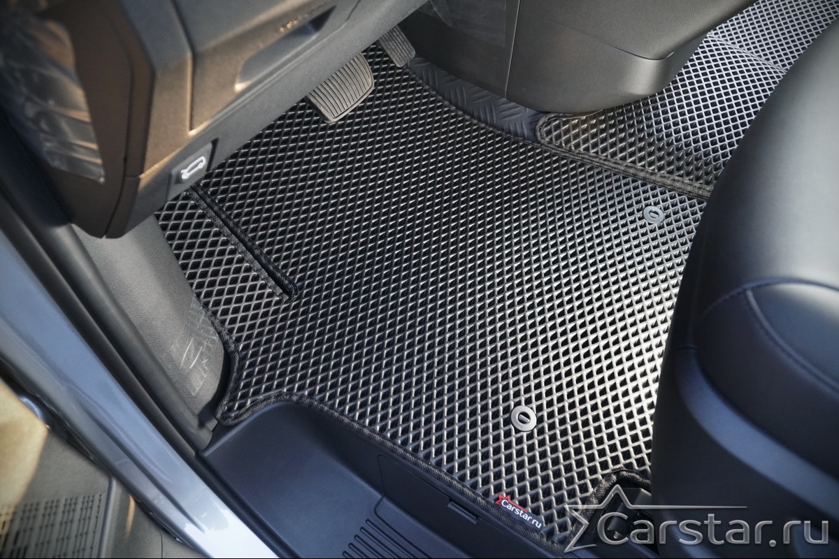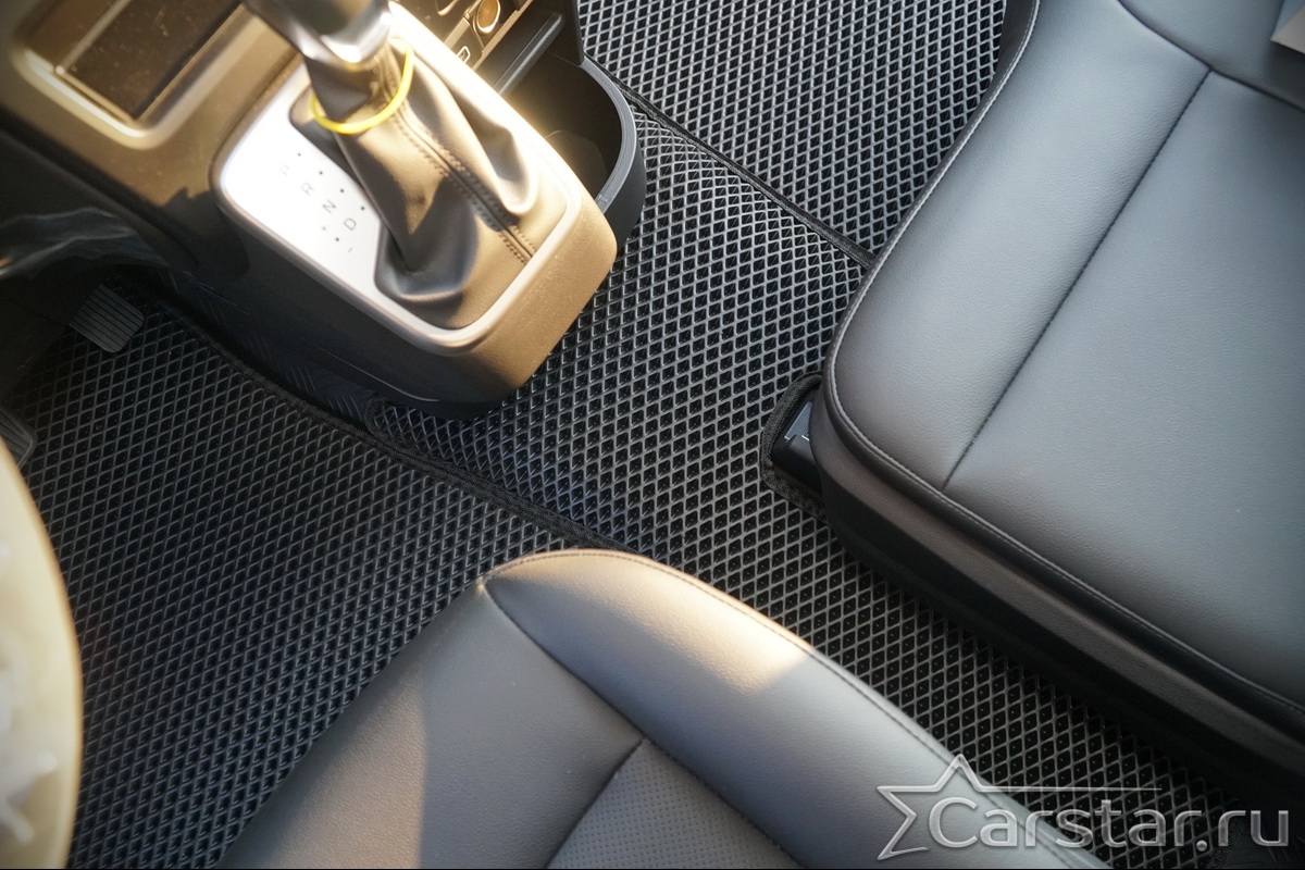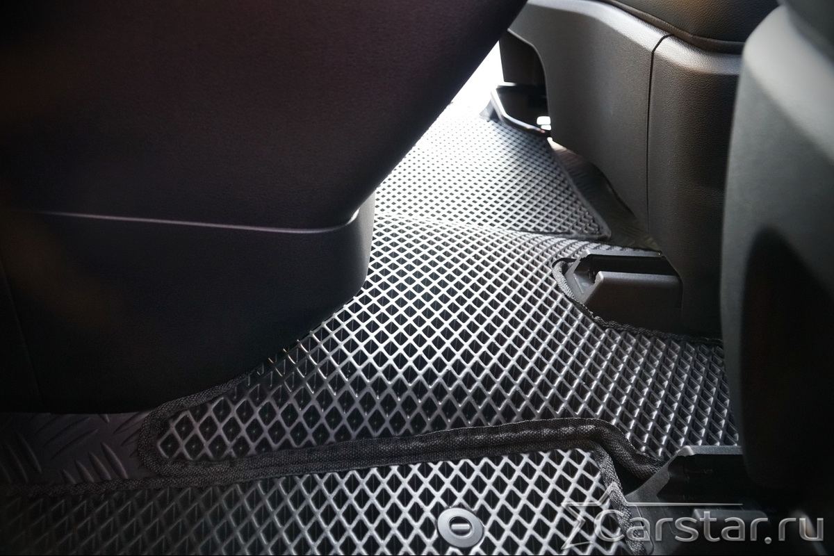 Текстильные коврики надёжно крепятся с помощью оригинальных систем фиксации. Обратная сторона имеет противоскользящее покрытие, что обеспечивает защиту от смещений и безопасность. Максимальное удобство достигается точными лекалами.