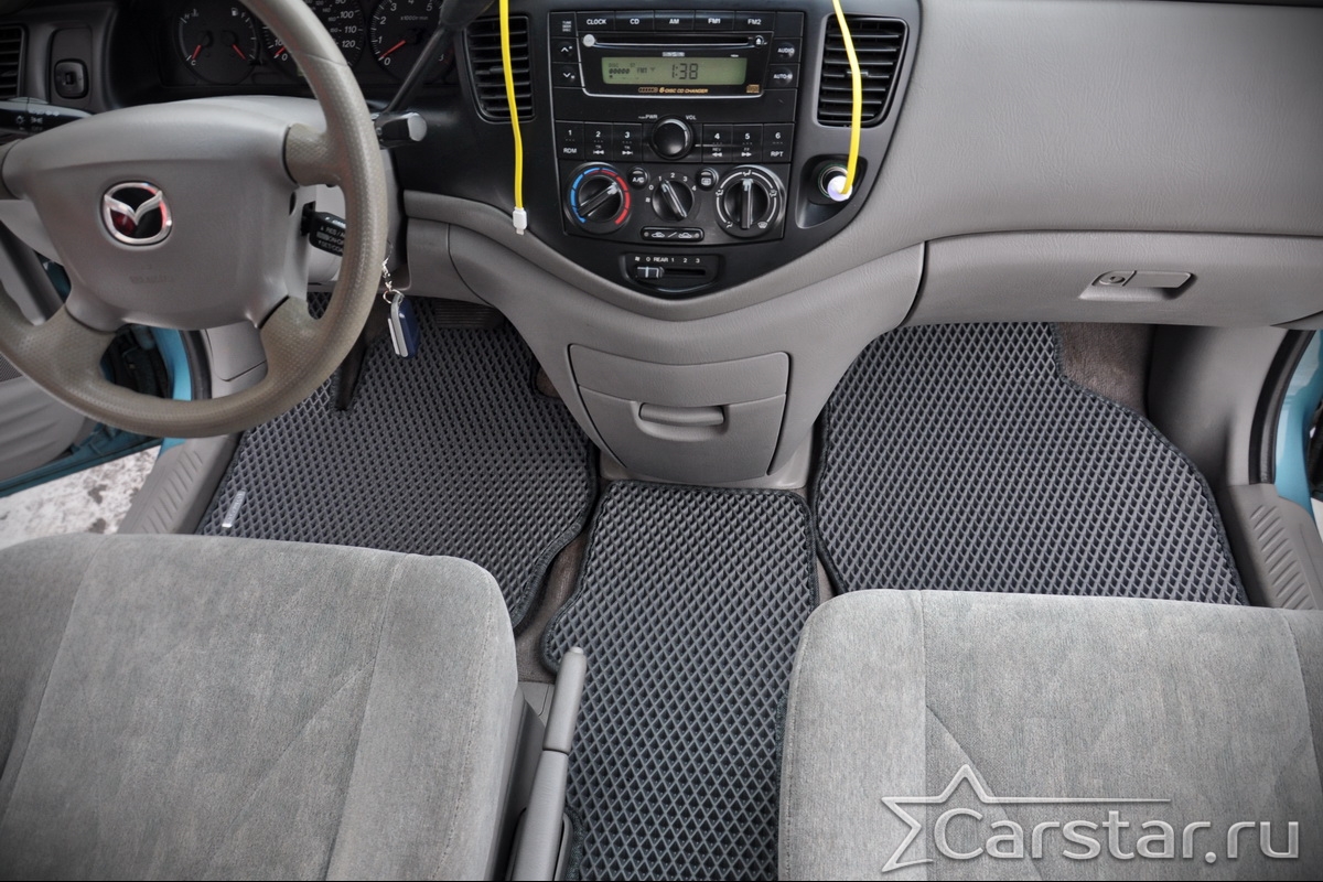 Текстильные автомобильные коврики Mazda MPV II (1999-2006) – это классический аксессуар, который обеспечит салону автомобиля неизменную чистоту, порядок и уют. Компания Carstar предлагает изделия из качественного ковролина в сочетании с полипропиленовым основанием на шипах, такая комбинация делает их прочными и водонепроницаемыми.