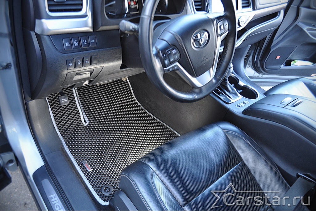 Текстильные автомобильные коврики Toyota Highlander III 3 ряда (2013-2019) – это классический аксессуар, который обеспечит салону автомобиля неизменную чистоту, порядок и уют. Компания Carstar предлагает изделия из качественного ковролина в сочетании с полипропиленовым основанием на шипах, такая комбинация делает их прочными и водонепроницаемыми.