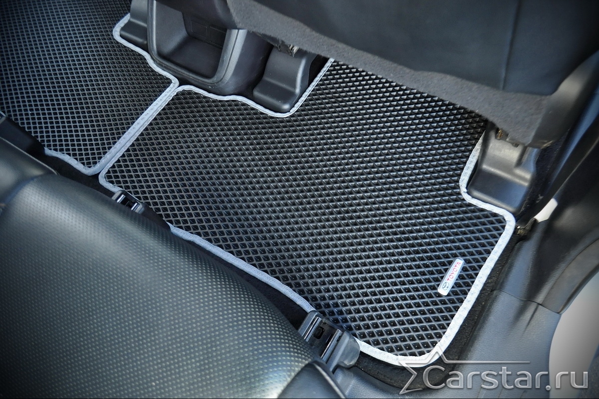 Текстильные коврики надёжно крепятся с помощью оригинальных систем фиксации. Обратная сторона имеет противоскользящее покрытие, что обеспечивает защиту от смещений и безопасность. Максимальное удобство достигается точными лекалами.